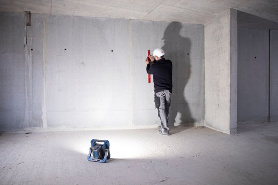 Professional rechargeable LED Work Light BS 5000 MA / Powerful Site Light 6000lm compatible with Bosch Professional 18V Battery System (IP55, 2 switching levels, dimmable, max. 5h lighting time, powerbank function, BGI608 K2, without battery, Engineered in Germany)