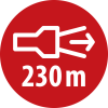 - The zoom function allows for a smooth transition from wide-area close-range lighting to focused long-range lighting with a range of up to 230 metres – simply by turning the lamp head