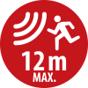 - Rörelsedetektorns maximala räckvidd är 12 m