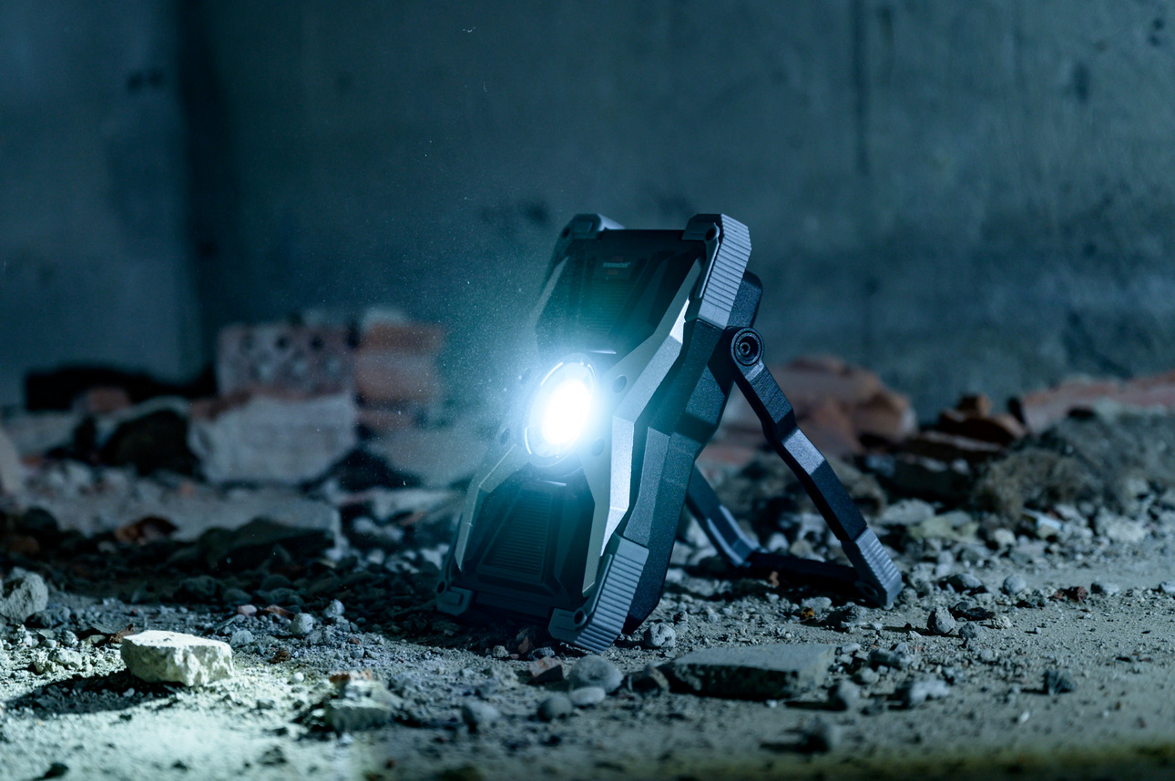 The mobile LED rechargeable spotlight RUFUS 3010 MA with Bluetooth speaker by Brennenstuhl is an extremely robust LED work light with 30W power that meets the highest demands. With a housing made of solid die-cast aluminium and additional edge protection made of high-quality plastic, it is suitable for both indoor and outdoor use. In addition, it has an integrated Bluetooth speaker, stream your music from popular apps stored on your smartphone or tablet. The working spotlight has a built-in rechargeable battery that has a charging time of approximately 5 hours. Furthermore, a switch with light function is integrated, which allows a dimmability of 10% - 25% - 50% - 75% - 100%. The built-in LEDs impress with their exceptionally long service life and their special light diffusion for large-area illumination. The construction spotlight is charged via the charging interface and with the help of the type A/C charging cable supplied. It also has the following impressive features: